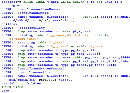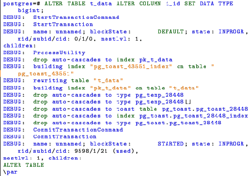 Here’s the t_data’s type change output with the client message level set to debug3.