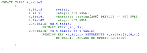 The data definition language groups all the commands defining, altering or dropping the database’s relations. Each command type follows a different syntax structure.