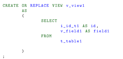 - The round brackets surrounding the view definition indents at the same level of the word AS