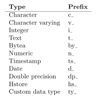 Adopting a similar approach for the column names makes the data type immediately recognisable.